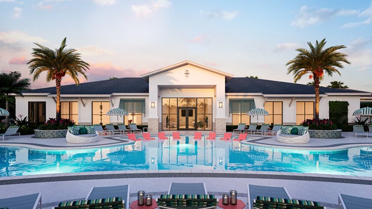 The property will showcase extensive amenities including pickleball courts, a lakeside walking trail, dog parks, a putting green and gaming area, outdoor kitchens and recreation spaces, an upscale pool with private cabanas, and a detached clubhouse with ample coworking space and a state-of-the-art fitness center.