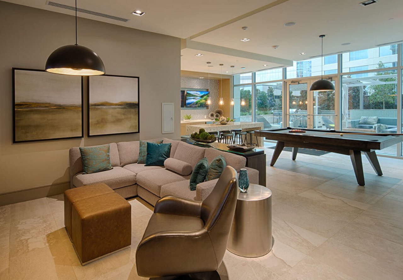 Upscale, inclusive, and thoughtful amenities support the busy lifestyle of residents while balancing an active social life. Residents benefit from a clubroom with Billiards, a bespoke fitness destination, business center, a stunning infinity edge pool, access to personal outdoor cabanas, a sky club lounge & bar, an outdoor gourmet kitchen equipped with grills, complimentary valet parking and 24-hour concierge service. The community continually meet the needs of any lifestyle.