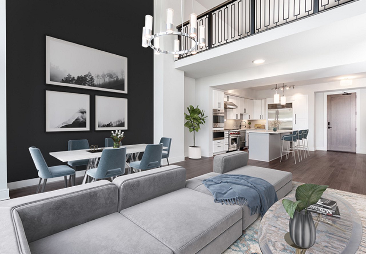 Residents also enjoy the convenience of a grocery store in the lobby retail space; a state-of-the-art fitness center with yoga studio and Peloton bikes; a reservable guest suite for visiting family and friends; and valet parking. The lobby offers 24/7 concierge services, business conference rooms with teleconferencing, a sports lounge with flat screens, coffee bar, and more.