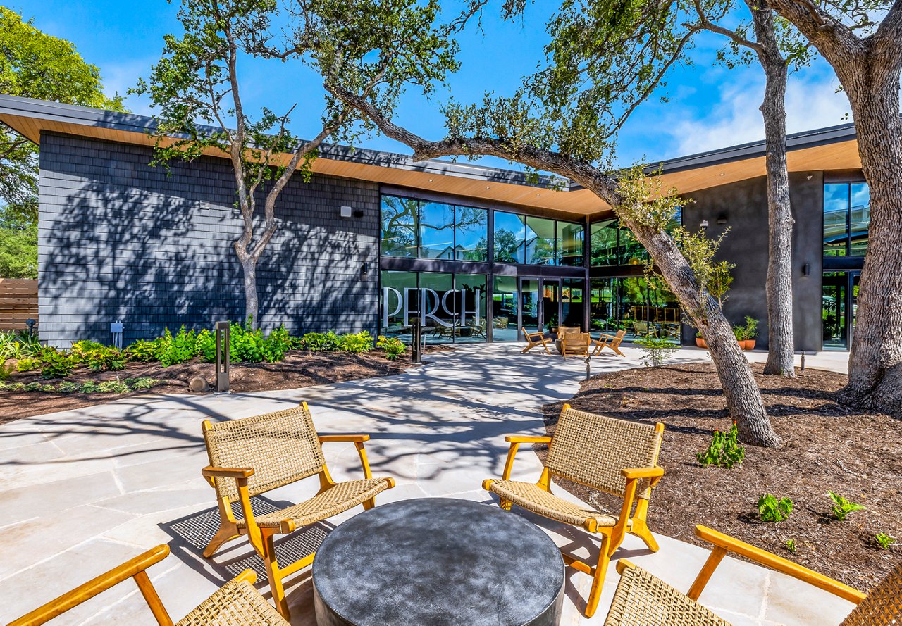 Set on a 10-acre site in South Austin, just a few miles from downtown, Perch offers a unique take on modern rental living. The neighborhood surrounding this completed garden-style community is lively and eclectic, offering easy access to local restaurants, trendy bars, and urban conveniences. What sets Perch apart is its built-in social scene—residents have an on-site coffee shop, restaurant, and wine bottle shop just steps from their front door.