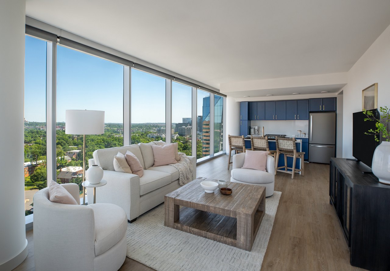 Inside each residence, chef-inspired kitchens, spa-inspired bathrooms, and keyless entry set the foundation for a refined living space. Select apartments feature floor-to-ceiling windows that frame stunning city views, bringing the vibrancy of Arlington right to your doorstep.