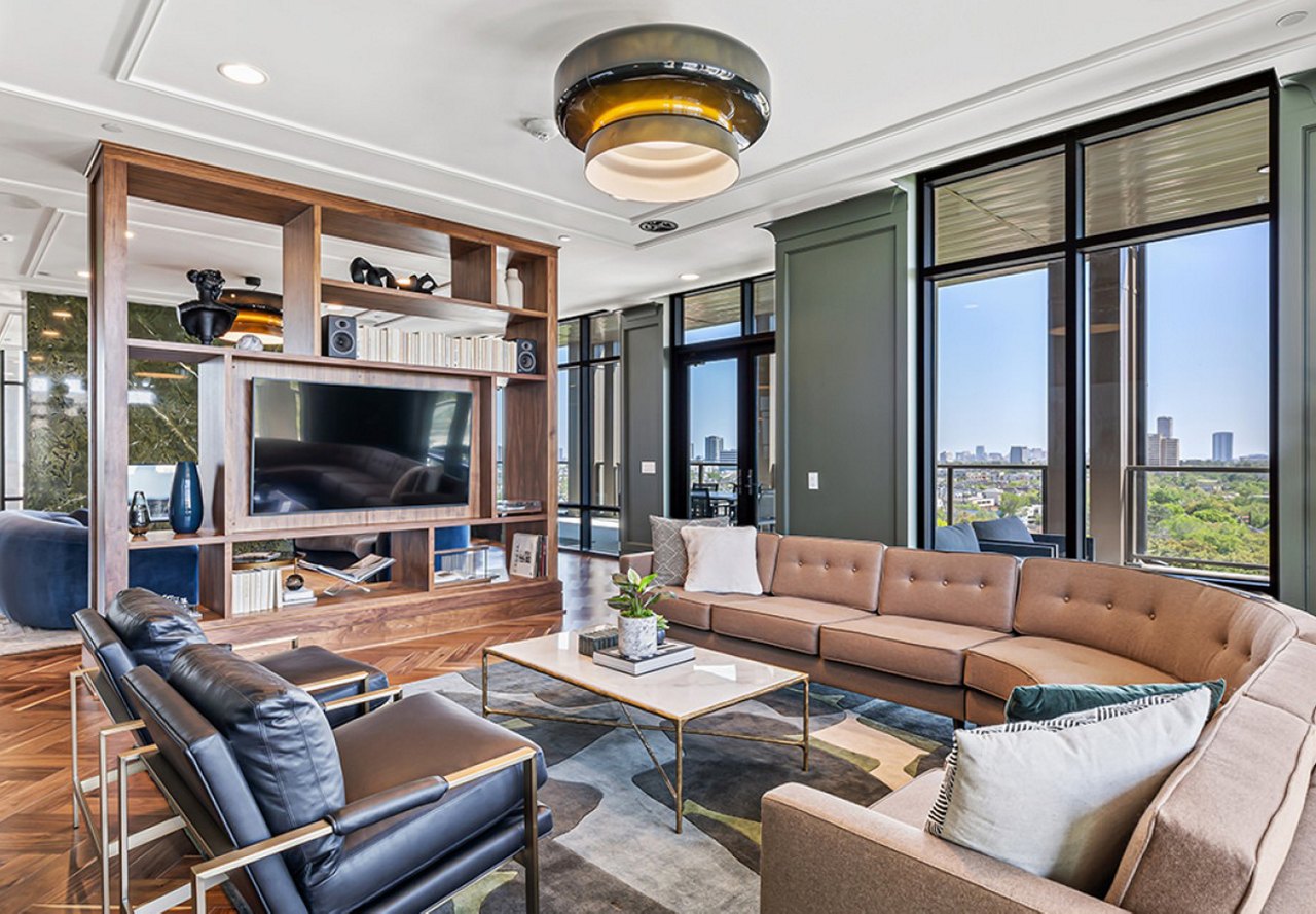 For wellness, The Westcott includes a state-of-the-art athletic club, a serene wellness studio, and a private massage room for relaxation. Pet owners will appreciate the on-site pet park and paw spa, which offer spaces to enjoy with their four-legged family members. Outdoor amenities include a beautifully curated pool with cabanas, a social courtyard, and dining areas. The 11th-floor sky deck offers breathtaking views of Memorial Park and the Houston skyline, complete with a kitchen, wine bar, and piano bar.