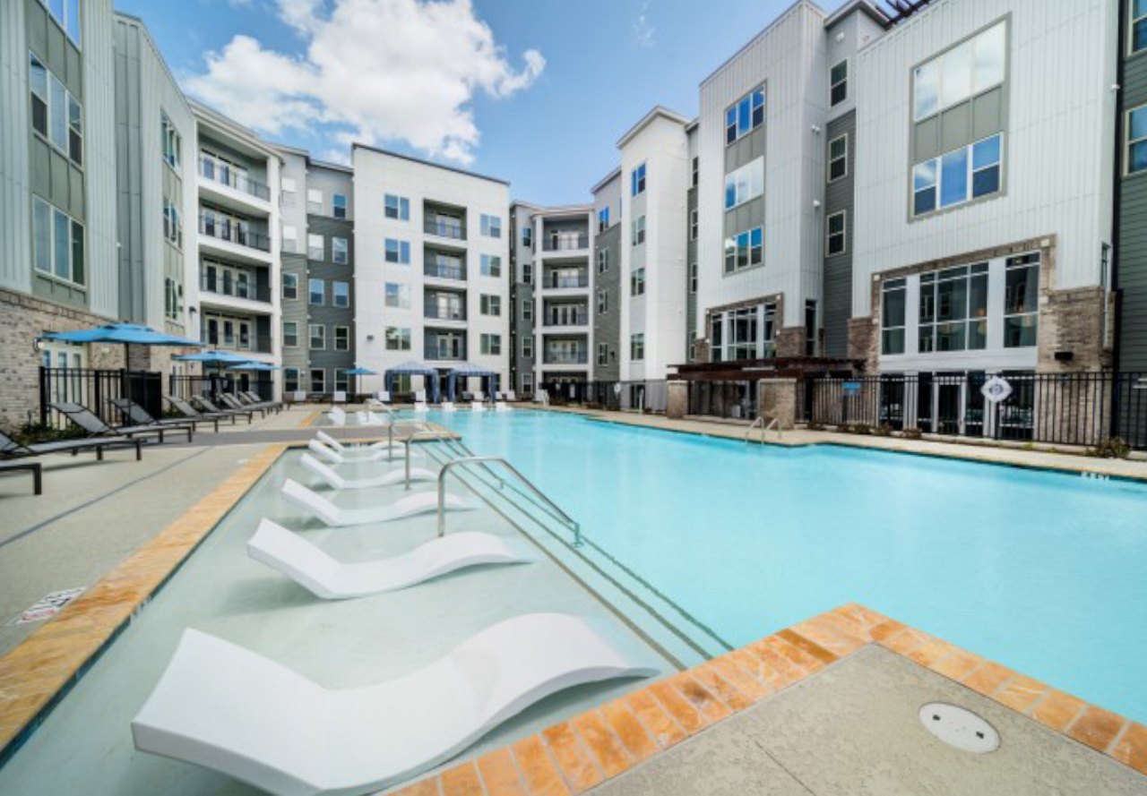 Union Chapel Hill provides 850 beds of luxury student housing just steps from campus. The project features approximately 18,000 square feet of amenity space, including a large fitness facility, various study rooms, a central pool courtyard, and a large outdoor volleyball courtyard.