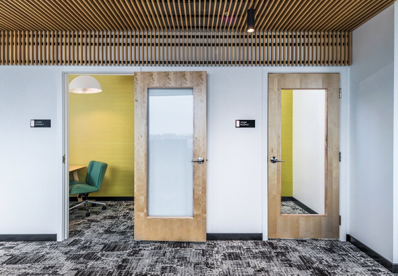 The building’s bold design is inspired by the natural features of the Willamette Valley, drawing on the region’s valleys and canyons. The structure is divided into two distinct masses—one light, representing the varied patterns of campus life, and one dark, embodying the more defined, urban patterns of downtown Eugene. This striking visual division reflects the duality of life in Eugene, bridging both its vibrant campus culture and its bustling cityscape.